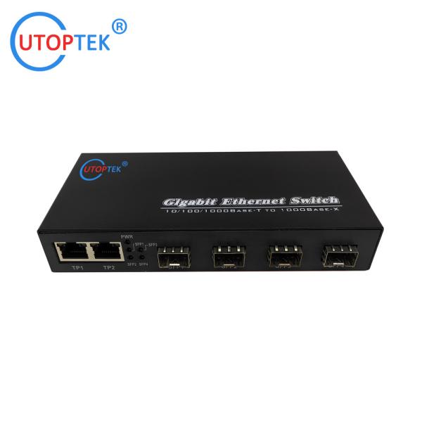 The UT-SW4003-SFP is a 10/100/1000Mbps adaptive gigabit Ethernet Fiber Switch. It has 3x 10/100/1000Mbps Ethernet ports and 4x 1.25Gbps fiber ports. We have various optical modules from 10Base-T to 1000Base-T as you require. It can extend the transmission distance, and also have many other advantages such as isolation protection, good data security, working stability and easy maintenance.